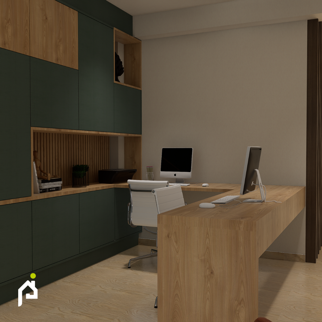 un concepto abierto con su despensa y un pequeño estudio.